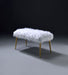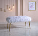 • Stylish Design: The Bagley II Bench features a sleek, armless and backless design with a luxurious white faux fur padded seat, complemented by a gold finish metal base, making it a chic addition to any space.