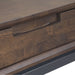 - Modern Industrial design includes graphite grey metal base and frame