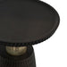 - Features spacious round tabletop, antique gold look stem and distinctive textured finish
