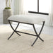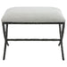 With Clean Contemporary Lines, This Cast Iron Base Features A Chiseled Texturing With A Distressed Charcoal Finish. Topped With An Upholstered Seat In A Casual Ivory And Light Gray Boucle Fabric.