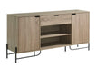 - Design and Material: The buffet has a contemporary look with a black and taupe finish. It is constructed from particle board, providing a sleek yet functional design.