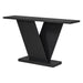 Console Table With V Shape Base / Natural Wood Veneer, Sculptural Entryway Accent - Black