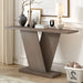 Console Table With V Shape Base / Natural Wood Veneer, Sculptural Entryway Accent - Taupe