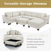 Contemporary U Shaped Sectional Sofa With Movable Storage Ottoman - White