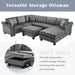 U Shaped Sectional Sofa Chenille Upholstered With Movable Storage Ottoman - Dark Gray