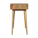- Features: solid mango wood, oak-ish finish, nordic style legs, curved cube drawer