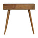 - Cube Carved Console Table - The main feature of this console table is the carved cube drawer fronts which make the pieces from this collection stand out. It has been constructed from 100% solid mango wood in an oak-ish finish, provides extra storage for any belongings and stands on 4 Nordic style legs. It can be partnered with the other pieces from the range or stand individually as its style is versatile and can fit into different types of interiors.