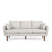 - Elegant Birchwood Legs: Supporting this stylish sofa are beautifully tapered birch wood legs, which combine durability with timeless elegance. The fine wood grain takes stains exceptionally well, resulting in a rich, polished finish that adds warmth and sophistication to the overall design. These sturdy legs provide reliable support while contributing to the sofa’s light, airy presence in any room.