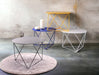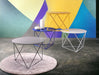 - Unique Design: Crafted entirely from metal, it features a round tabletop with three uniquely designed triangle-shaped legs, offering a modern and sleek aesthetic.