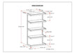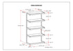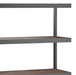 - Features Four (4) large solid Acacia open shelves, sturdy matte graphite Gray metal frame and base, Includes Anti - Tip Hardware