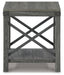 Open the door to modern farmhouse style with this square end table. The beautiful woodgrain look and classic crossbuck metal accents are a cool touch, while the lower shelf provides surface space for fashionable home accessories.