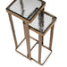 Add a touch of modern elegance with this set of nesting end tables, crafted from durable mild steel and topped with thick casted glass. The hammered gold finish and sleek silhouette create a striking look, perfect for contemporary living rooms, bedrooms, or entryways. Use together or separately as space-saving side tables, plant stands, or accent pieces that bring both function and sculptural style to your home decor.