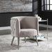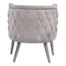 This Stylish Barrel Chair Features A Plush Diamond Button Tufted Surround In A Luxurious Champagne Velvet, Lined With Antique Nickel Nail Head Trim, On Metal Tapered Dowel Legs Finished In Brushed Nickel.