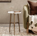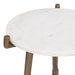 This modern end table features a sleek marble top supported by a sculptural casted aluminum base in an antique gold finish. The minimalist silhouette and refined materials make it a perfect accent table or side table for contemporary living rooms, bedrooms, or office spaces. Stylish and functional.