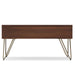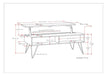 - Industrial design includes four (4) black iron hairpin legs