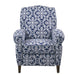 Push Back Recliner Chair With Fretwork Pattern And Solid Wood Legs - Multicolor