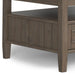 - Transitional design includes grooved detail on front, sides and brushed bronze handles