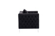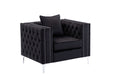 - Glam up your living room with the Lorreto Collection! Crafted from fine wood and quality fabrics, this chair features an abundance of button tufting. The double nail-head trim adds a touch of elegance while the low back adds better lumbar support. Entertain your guests and family members in comfort and style.