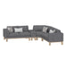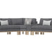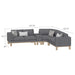 If you thought amenities were only for motion furniture, think again. The completely stylish Maeve collection offers a console with hidden storage, stainless steel cupholders, a wireless charging station, and a wireless speaker with USB chargers. An extra-wide, barrel-shaped accent chair is accompanied by a matching barrel-shaped storage ottoman. The spacious wedge of the sectional makes for extra cuddling space, while the gorgeous dark gray fabric sits atop a warm-toned exposed wood base. Get the whole package with the Maeve collection.