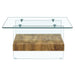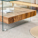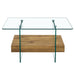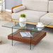 Modern 2 Tier Square Coffee Table With Clear Glass And Wood Texture - Natural Wood / Transparent