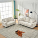 3 And 2 Seater Sofa With Rolled Arms And Nailhead Trim Upholstered Couch With Legs - Beige