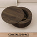Circular Coffee Table With Stripe Design And Hidden Storage - Walnut