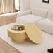 Circular Coffee Table With Stripe Design And Storage Space - Natural Wood