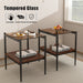 Modern Rectangle End Table (Set of 2) With Tempered Glass Tabletop And Layer - Brown