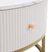 Modern Nightstand With Drawer, Marble Round End Table - White