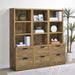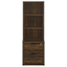 Multifunctional Bookcase With 3 Open Shelves And Locking Drawers, USB Charging - Brown / Pine Wood