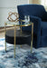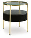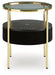 Details Made with engineered wood, glass and metal, Goldtone finish, Glass top, Black polyester fabric on sides, Tabletop with wireless charging and touch-button controls, 6.5" full-range speaker; 2" tweeter speaker, Wireless connection; aux audio input; USB-C charging, Assembly required