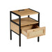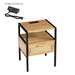 Rattan End Table With Power Outlet & USB Ports, Modern Nightstand With Drawer And Metal Legs, Side Table For Living Room, Bedroom - Natural