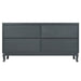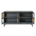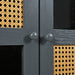 Retro Industrial Gray 4 Door Sideboard With Large Storage, Rattan And Glass Doors - Antique Dark Gray / Rattan