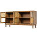 Retro 4 Door Sideboard With Large Storage Space, Artificial Rattan Doors - Transparent Glass - Antique Brown