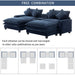 Contemporary Chenille Upholstered Sectional Sofa With Ottomans, USB Ports, Cup Holders & Storage - Blue