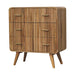 - Artisan Furniture Solid Wood T-bar Ridged Chest - This beautiful T-bar Ridged Chest has been constructed from 100% solid mango wood and has a lovely natural oak-ish finish. It has features such as t-bar handles for easy access to the drawers, as well as 4 Nordic style legs for stability and a modern touch. Make full use of this piece in your bedroom and let it take care of storing all your belongings.