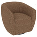 - The Vega swivel chair brings together smooth movement with sculptural comfort. This barrel-back design makes a subtle statement in textured, multi-toned fabric—boucle-inspired and artisan-woven, with creamy threads layered into warm spice or slate blue yarns. Featuring a sinuous spring seat and supportive foam cushioning, the compact footprint of this accent chair works anywhere from reading corners to bedroom nooks. Whether paired with modern lines or vintage finds, this swivel accent chair brings adaptable style with a cozy, collected feel..