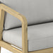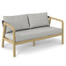 • Sofa frame, seat base, arms and legs are constructed from solid acacia wood and handfinished in light teak