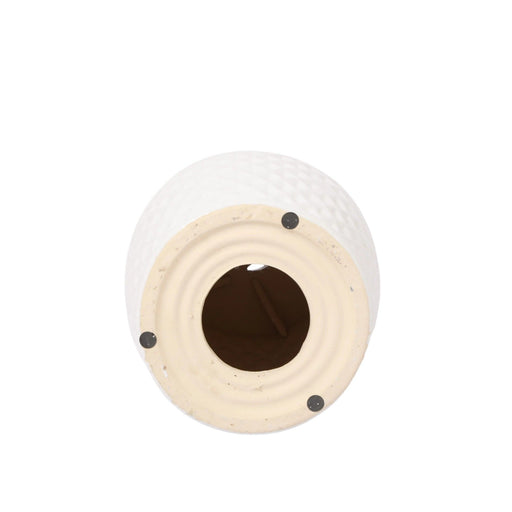 Glazed Ceramic Drum Stool Indoor / Outdoor Side Table Ceramic - White