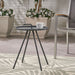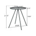 • Modern Design: The side table features a modern aesthetic with its circular design, bold, straight legs, and clean lines. Its distinctive look is further enhanced by a carrying handle and four angled legs that contrast beautifully with the circular tabletop.