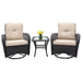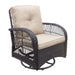3 Piece Conversation Set, Outdoor Wicker Rocker Swivel Patio Bistro Set, Rocking Chair With Glass Top Side Table - Khaki / Brown