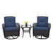 3 Pieces Conversation Set, Outdoor Wicker Rocker Swivel Patio Bistro Set, Rocking Chair With Glass Top Side Table - Navy Blue