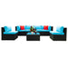 5 Pieces Rattan Sectional Outdoor Furniture Cushioned U Sof Set With 2 Pillow - Black / Blue