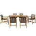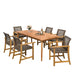 7 Piece Patio Dining Set, Slatted Table & 6 Chairs For Patio Garden - Mocha / Teak