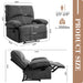 - Generous Seat Width: The recliner features a spacious 27.5" width, offering ample room to sit back and relax comfortably, whether you prefer to curl up or stretch out.