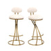 Round Bar Stool Armless Velvet Barstools With Back (Set of 2) Upholstered Counter Chair For Dining Room, Kitchen Island - Gold / Creamy White