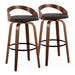 Grotto - Mid-Century Modern Fixed Height Barstool With Swivel With Round Footrest (Set of 2) - Walnut / Brown