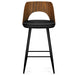 - Features walnut look wood chair back, four black powder coated sturdy legs with black powder coated metal foot rest and foam padded seat