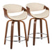 Symphony - Mid-Century Modern Fixed Height Counter Stool With Swivel And Round Footrest (Set of 2) - Walnut / Cream