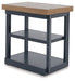 | Details | Includes coffee table and 2 end tables, Made with hardwood solids, mindi veneer and MDF substrate, Tabletop with light brown wood-tone finish, Base with dark blue slate finish, Coffee table includes casters for easy mobility, End tables have 2 open shelves, Assembly required | |